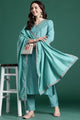 Blue embroidered Kurta with Trousers with dupatta