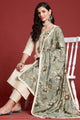 Cream-coloured embroidered Kurta with Trousers with dupatta