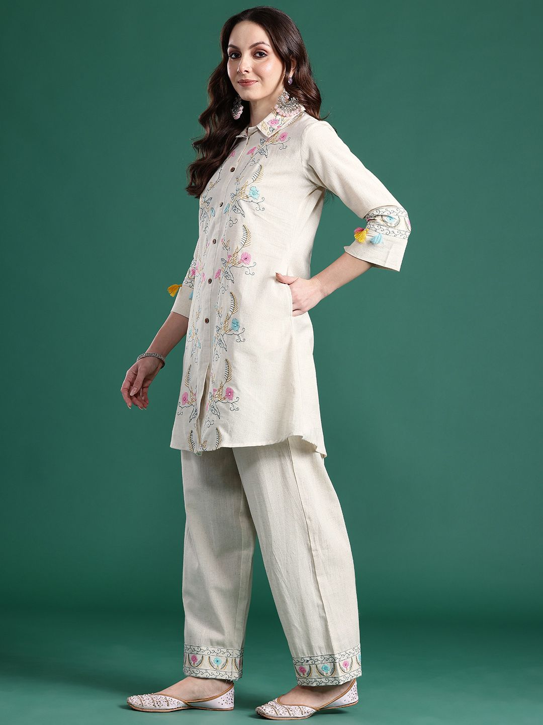 Dhiyona IE Floral Embroidered Thread Work Kurti with Trousers