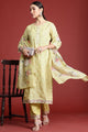 Dhiyona IE Floral Embroidered Thread Work Linen Kurta with Trousers & With Dupatta