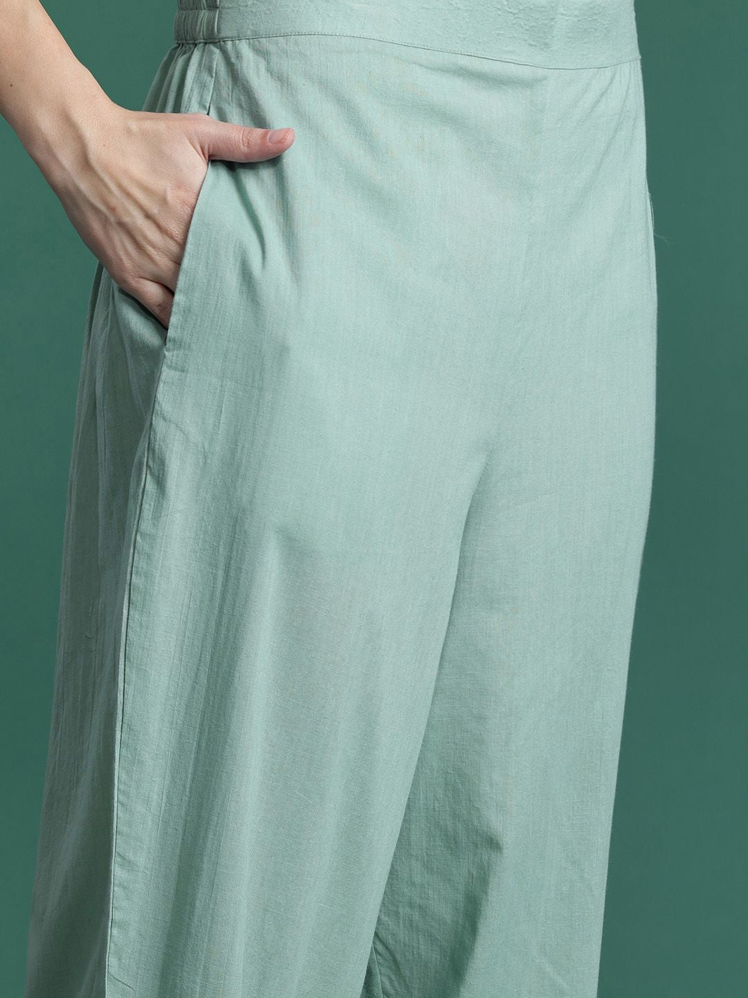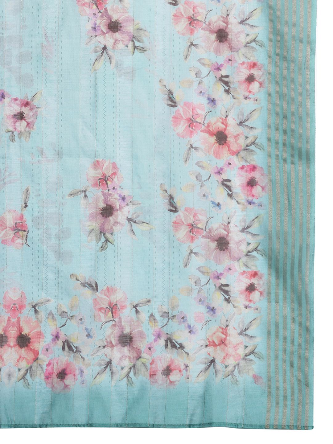 Dhiyona IE Floral Embroidered Thread Work Linen Kurta with Trousers & With Dupatta