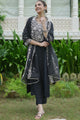 Dhiyona IE Floral Embroidered Thread Work Liva Kurta WithTrousers & Dupatta