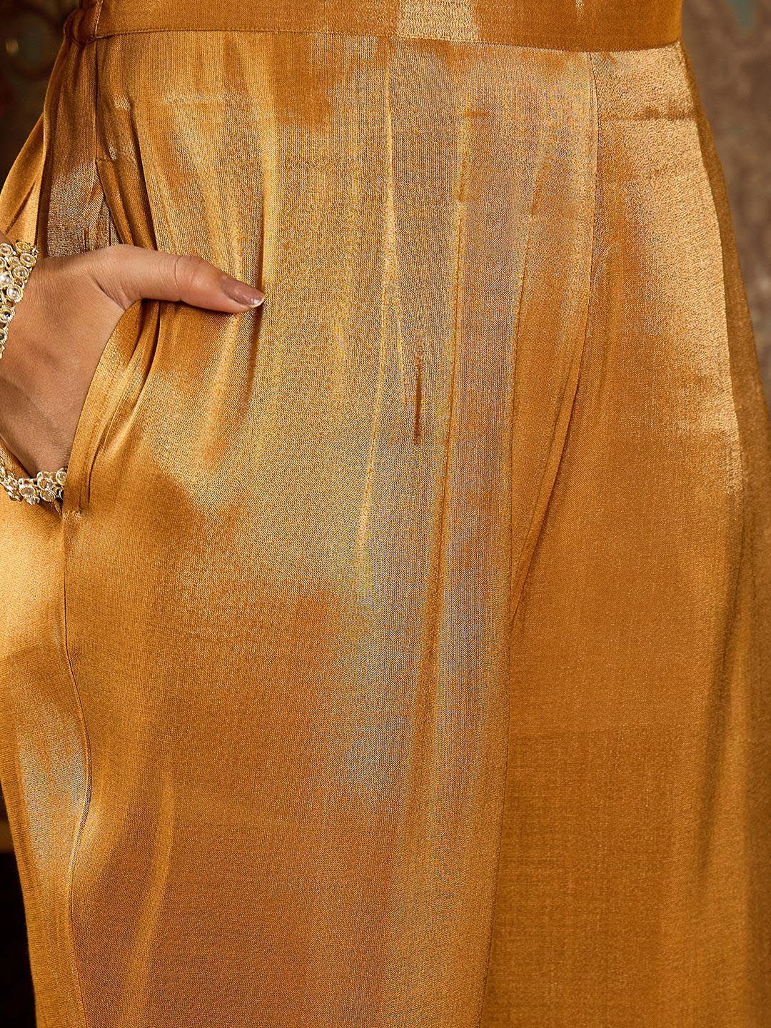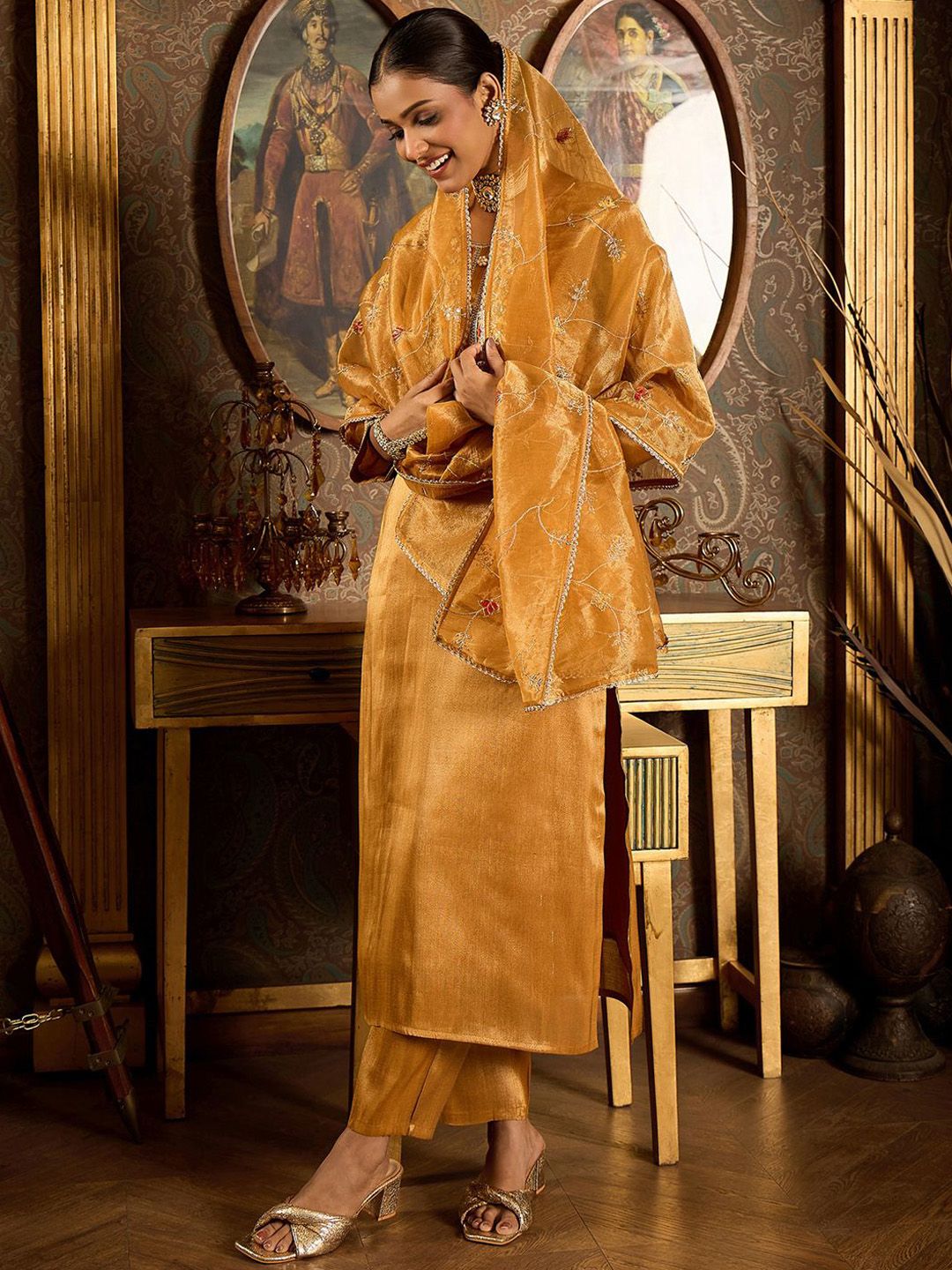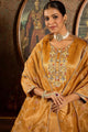 Yellow and gold embroidered Kurta with Trousers & dupatta