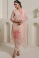 Dhiyona IE Floral Embroidered Thread Work Organza Straight Kurta With Trousers & Dupatta