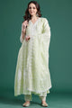 Dhiyona IE Floral Embroidered Thread Work Pure Cotton Kurta With Trousers & Dupatta