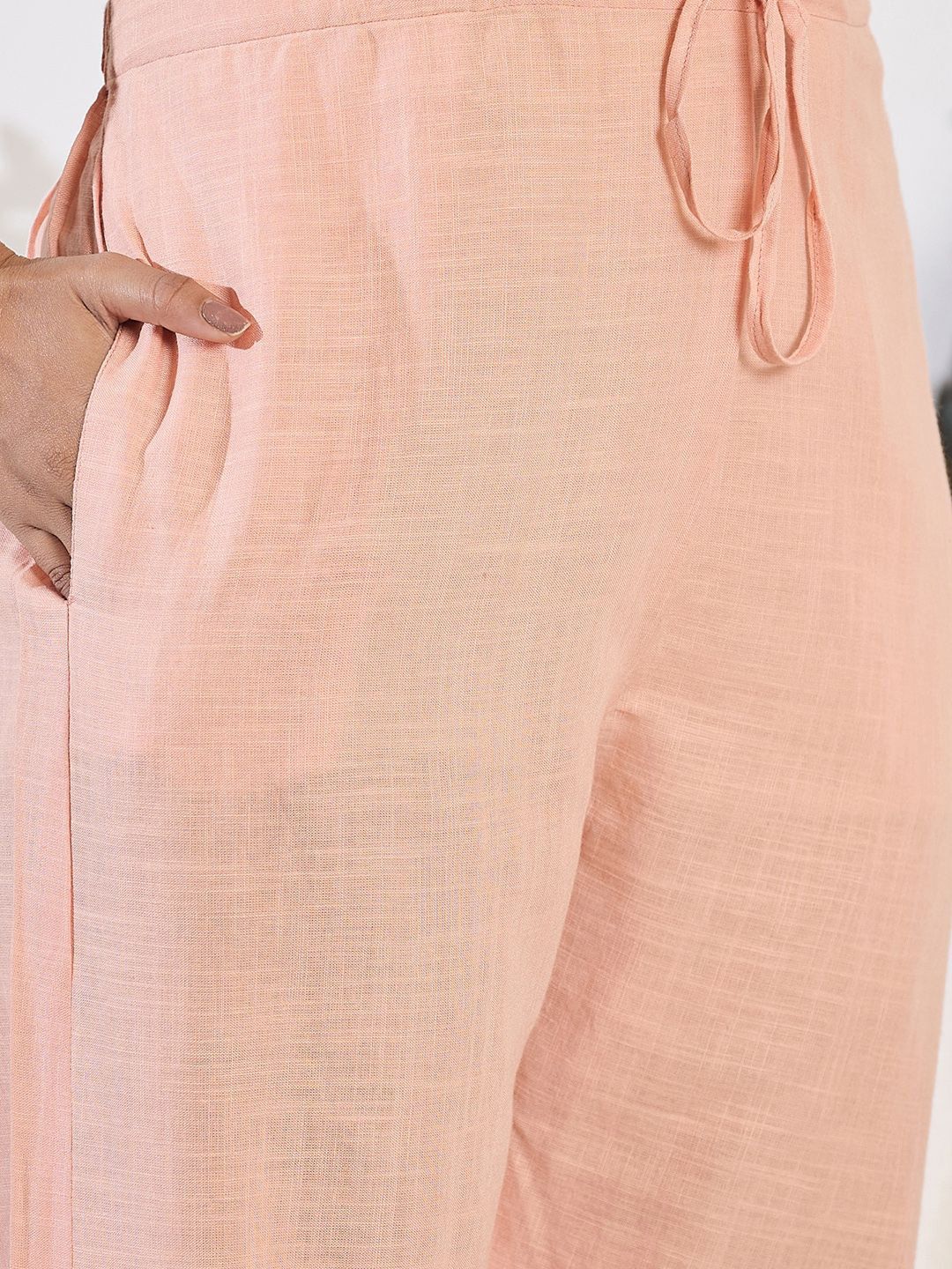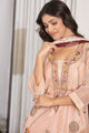 Peach-coloured, yellow & pink floral embroidered kurta with trousers & dupatta