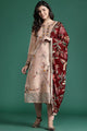 Peach-coloured embroidered Kurta with Trousers with dupatta
