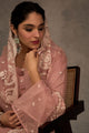 Pink & white embroidered kurta with trousers & dupatta