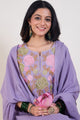 Lavendar, pink and green embroidered kurta with trousers & dupatta