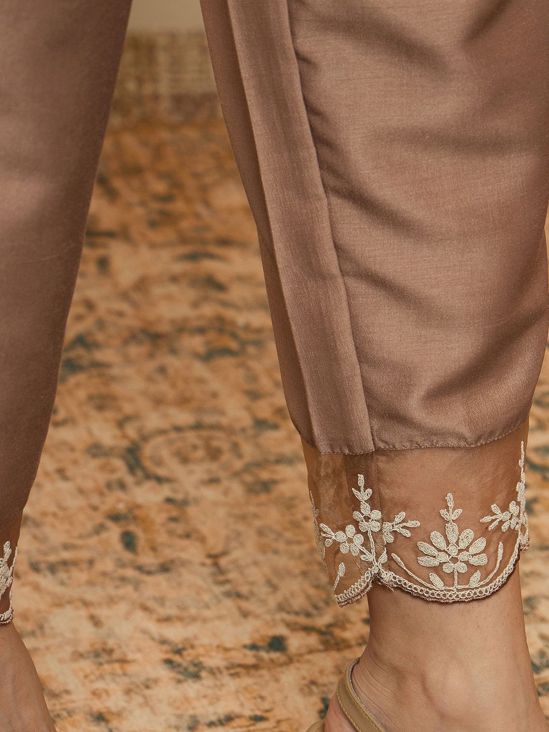 Dhiyona IE Floral Embroidered Thread Work Straight Kurta With Trousers & Dupatta