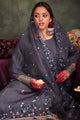 Grey, blue and pink embroidered kurta with trouser and dupatta