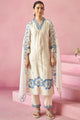 Off white and blue embroidered Kurta with Trousers with dupatta