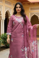 Dhiyona IE Floral Embroidered Thread Work Straight Kurta With Trousers & Dupatta