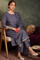 Grey, pink and blue embroidered kurta with trousers & dupatta