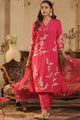 Dhiyona IE Floral Embroidered Thread Work V-Neck Straight Kurta & Trousers With Dupatta