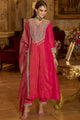 Pink gold-toned and white embroidered kurta with trousers with dupatta