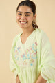 Dhiyona IE Floral Embroidered V Neck A Line Pure Cotton Kurta With Trousers & Dupatta
