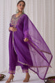Dhiyona IE Floral Embroidered V-Neck Liva Kurta with Trousers & Dupatta