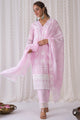Dhiyona IE Floral Embroidered V-Neck Pure Cotton Kurta with Trousers & Dupatta