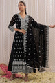 Dhiyona IE Floral Embroidered V-Neck Pure Cotton Straight Kurta with Trousers & Dupatta