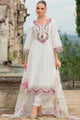 Dhiyona IE Floral Embroidered V-Neck Straight Thread Work Kurta With Trousers & Dupatta