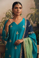 Teal, white and yellow embroidered kurta & churidar with dupatta