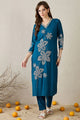Dhiyona IE Floral Embroidered V-Neck Top With Trousers Co-Ords