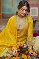 Yellow and gold-toned embroidered kurta with trousers and dupatta