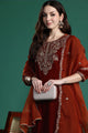 Rust embroidered Kurta with Trousers with dupatta