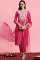 Dhiyona IE Floral Embroidered Yoke Design Kurta With Trousers & Dupatta