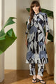 Black and white printed tunic, has a shirt collar and three-quarter sleeves