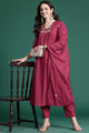 Red solid Kurta with Trousers with dupatta