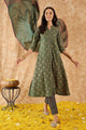 Green, pink & gold toned printed kurta with trousers & dupatta