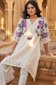 Dhiyona IE Floral Printed Beads And Stones V-Neck A-Line Pure Cotton Kurta With Trousers