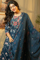Blue, red and white printed Kurta with Trousers with dupatta