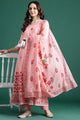 Dhiyona IE Floral Printed Beads & Stones Pure Cotton Kurta With Trousers & Dupatta