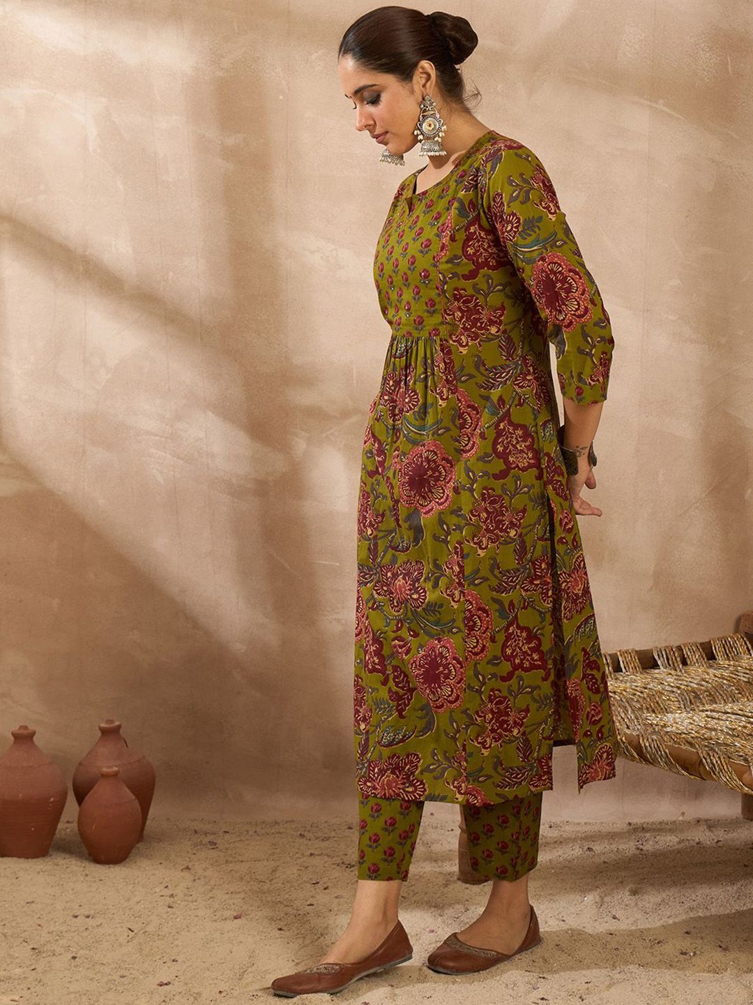 Dhiyona IE Floral Printed Cotton A-Line Tunic With Trousers Co-Ords