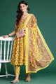 Yellow printed Kurta with Trousers with dupatta