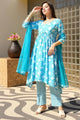 Dhiyona IE Floral Printed Empire Mirror Work Cotton A-Line Kurta with Trousers & Dupatta
