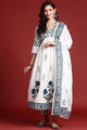 Dhiyona IE Floral Printed Empire Mirror Work Pure Cotton Kurta With Trousers & Dupatta