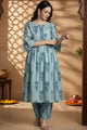 Dhiyona IE Floral Printed Empire Notch Neck Pure Cotton A-Line Kurta With Palazzos