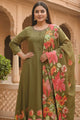 Olive green printed Kurta with trousers and dupatta