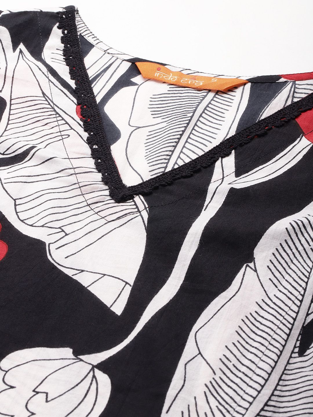 Dhiyona IE Floral Printed Lace Detailed Pure Cotton Kurta with Trousers