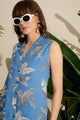 Dhiyona IE Floral Printed Lapel Collar Linen Kurta With Trousers