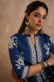 Dhiyona IE Floral Printed Mandarin Collar Mirror Work Straight Kurta With Palazzos