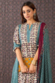 Dhiyona IE Floral Printed Mandarin Collar Pure Cotton A-Line Kurta & Trousers With Dupatta