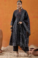 Black, white and red printed kurta with trousers and dupatta
