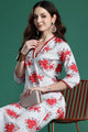 Dhiyona IE Floral Printed Mirror Work Pure Cotton Kurta with Trousers