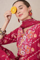 Pink and cream printed kurta with trousers and dupatta