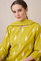 Dhiyona IE Floral Printed Notch Neck Sequinned Pure Cotton Kurta & Trousers & Dupatta